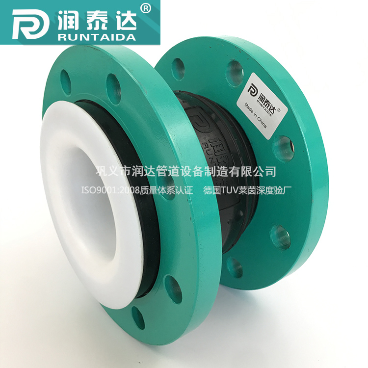 襯四氟可曲撓橡膠接頭是在一般橡膠接頭或者三元乙丙高耐磨橡膠接頭的基礎上在內部增PTFE.TEFLON聚四氟乙烯涂層,涂層主要為白色,能有效的保護橡膠接頭不被腐蝕介質強酸,強堿或是高溫油料的侵蝕。可曲撓橡膠接頭原來具有的機械和物理性能沒有收到一點影響,仍能夠補償管道振動吸收管道位移降低管道噪音。聚四氟乙烯涂層能有效的附著在管道內壁上面,防止受到介質沖刷或者管道拉伸收縮產生脫離,鞏義市潤達管道襯四氟可曲撓橡膠接頭采用進口優質原橡膠,具有持久耐用的特性。