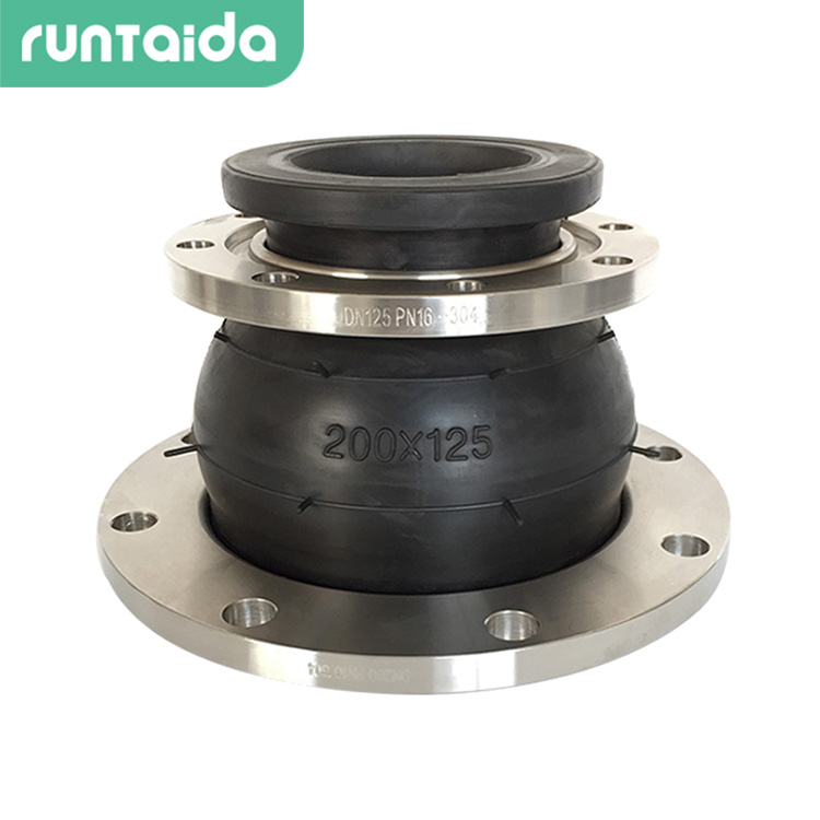 4、異徑橡膠接頭與管道法蘭連接時,螺栓絲桿應伸向管道法蘭一端,以防止螺紋將受壓膨脹時橡膠接頭的拱起部分擠傷或扎傷,每一端的螺栓須對稱地加壓擰緊,使所有螺栓松緊一致,使用條件惡劣的場所,除增加平墊外,還應增加彈簧墊圈,以防螺母松動。