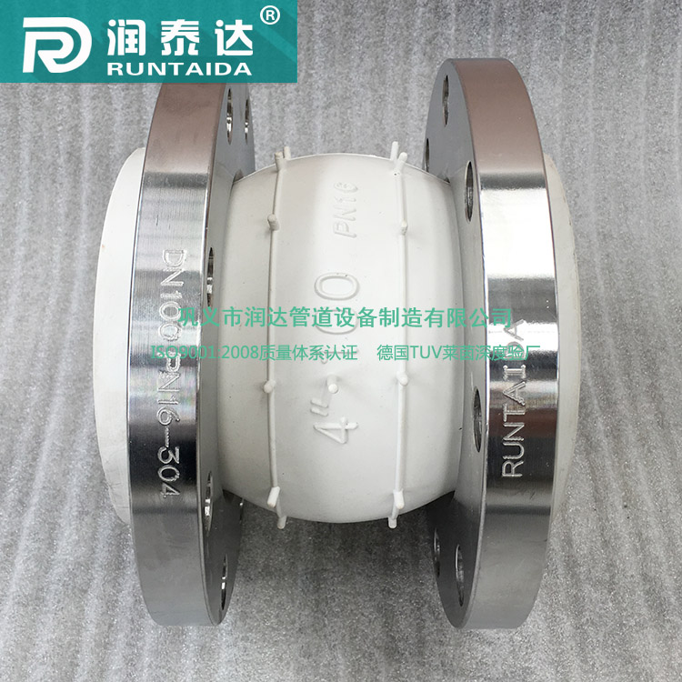 潤達管道生產的食品級橡膠接頭采用專用的食品級橡膠接頭生產流水線,車間的溫度,濕度,浮塵都符合的標準規定,產品質量獲得了ISO9001-2008產品質量體系的認證,產品本身的伸縮,抗壓功能同樣十分優良,針對食品管道的振動和熱伸縮都能起到良好的位移補償的功能。