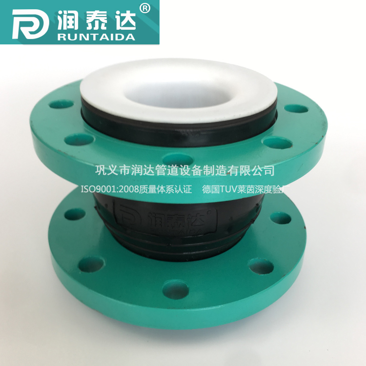 耐酸堿型橡膠軟接頭主要采用氯丁橡膠,三元乙丙橡膠及天然橡膠多種元素合成,同時經過專家的實驗調配適當比利,研制出了超強耐酸堿的橡膠,再加上先進的生產技術和優良的生產工藝,使得橡膠軟接頭在強酸,強堿,硝酸等各種酸堿性環境下的使用壽命得到了大大的提高,避免了經常更換的麻煩,同時也節約了成本。 耐酸堿橡膠接頭還有聚酯簾布,加以創新和改良,研發出了耐高溫220℃的橡膠接頭。使得傳統上三元乙丙橡膠僅承受150℃的溫度得到了提高。同時也使得應用于高溫環境下的軟接頭的壽命和使用質量得到了提高。避免了之前應用于高溫狀態下的軟接頭容易龜裂和硬化,頻繁更換的麻煩,同時也贏得了廣大用戶的滿意和認可。同時也使得應用于液壓油,石油,機油,柴油,潤滑油等環境下的軟接頭的壽命和使用質量得到了提高。避免了之前應用于油狀態下的軟接頭容易龜裂和腐蝕,頻繁更換的麻煩,同時也贏得了廣大用戶的滿意和認可。